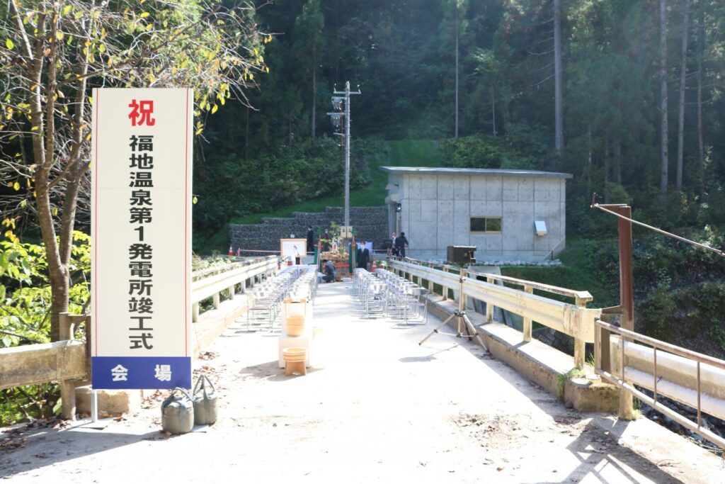 秋晴れの中、福地温泉第一発電所の竣工式が執り行われました。